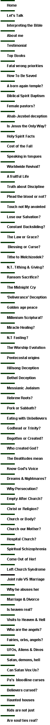 GOD’S UNIVERSAL ORDER FOR BOTH MALE AND FEMALE IS JOINT MANAGEMENT OF THE EARTH Do wives have to feel guilty because they, through mounting economic pressure in today’s world, have to leave their children in day care to work in the corporate world as well? Do they have to feel inadequate because holding down the career of homemaker and the career of business woman at the same time, overburden them and they cannot, through unavoidable circumstances, make a choice between the two? Or should a wife bury her God-given gifts and talents to stand ‘barefoot and pregnant in the kitchen,’ instead of glorifying God with all the gifts and talents He had entrusted to her, (and for which she will have to give an account before His throne, Mt. 25:14-30,) just because she is female? Is it true that women, although personally called by God, cannot minister “in church” or “have any ‘authority’ over men?” Well, let us not listen to the false clergy that tampered with the Scriptures through the ages, (Mark 7:13; Mt. 15:6-9,) and still take Bible verses out of context to oppress women. They even added their misogynist views to Scripture to make Paul speak out of two mouths; condemning women to silence and beating them into submission to all men on all levels of life - while also making them equal to men before God at the same time, (Gal. 3:28.) Was Paul confused? No, I believe the evil church clergy that came after him made him speak their language of misogyny, because in the full context of Scripture God Himself never said the terrible things these misogynists teach to wreak havoc in secular male/female relationships, and in marriage in particular, (Acts 2:17-19; 1 Cor. 14:34; Gal. 3:28.) Listen to what God himself originally said at creation. When the Pharisees came to snare Jesus in their man-made divorce laws, He answered, “Because of the hardness of your hearts Moses allowed you… But in the beginning it was not so…” (Mt. 19:8.) The so-called “passive Ahab” and “controlling Jezebel” dogma is a dangerous deception. At creation, God planned that male/female humanity should live in a flawless relationship with Him, with one another, and with His whole creation. Þ So, in Gen. 1:26-28, God described how He made the male/female, human species to achieve this original plan. “Then God said, Let Us, [Father, Son and Holy Spirit], make mankind in Our image and let them, [both male and female], have dominion [over all the earth…] So, God created humanity in His own image: in the image of God He created him; male and female He created them. Then God blessed them, [male and female], and said to them, [male and female]: Be fruitful… [not just in your marriage covenant, family, and home, but in everything I have entrusted to you.] Replenish the earth and subdue it, and have dominion over [everything] that moves on the earth... I have [entrusted to your care] every herb... tree [and] seed... beast... bird... and everything that creeps on the earth. Then God saw everything that He had made [and the way He had structured His entire creation under the care of male-female humanity,] and it was very good.” Þ This is God’s universal order for both male and female, which firmly rests on joint management of the whole earth. This was God’s Universal Plan for humanity when He created one male, and divided him into two separate human beings, (male and female,) to fuse them together again through His holy marriage covenant, for the sake of their family and home, not for the sake of the corporate and religious worlds! The fall in Eden marred and corrupted both God’s Universal and Specific (marriage covenant) plans for humanity, but Jesus Himself made it plain that it certainly could not, and will not annul what God had planned and commanded in Eden, (Mt. 19:1-9.) Þ God would not have entrusted His Holy Spirit gifts, talents, and calling to both male and female humanity, if He also commanded that females must bury their gifts, talents, and calling, for which they will have to give an account on That Day when Jesus comes for them, either at death or at His return on the clouds. He clearly commanded in Acts 2:17-21, “I [poured] out My Spirit… on My sons and My daughters to prophesy… see visions… dream dreams. And My menservants and My maidservants… will prophesy [or minister in My Spiritual Kingdom, where spiritually, ‘there is neither male nor female, but all believers are one in Christ Jesus,’ Gal. 3:28.)” Þ Both God’s Universal Plan and specific Marriage Covenant are His incorruptible blueprints for humanity. Both male and female are called to obey these original callings and commandments of God to fulfil their places in society and in marriage. There should not be any competition between male and female in their joint management of the earth. Each gender should simply fulfil his and her place in the corporate world, according to their own giftedness, as God had entrusted to them. And each gender should simply fulfil His plan as husbands and wives in the marriage covenant, as they themselves had promised to do. This is His master plan, which He treasures for both male and female: to resemble His outward form; to possess His virtues and Godly character; to communicate with Him in spirit and in truth; to worship and revere Him above all else; to love, help, support, and respect one another while fulfilling their marriage covenant and caring for their home and family - all the while executing their joint responsibility for planet earth under His authority, (Mal. 2:14-15; Eph. 4:13; Jn. 4:23-24.) God’s universal order and marriage order are vastly different and yet, they compliment each other in ways, which only God could have foreseen. Working together to obey God's original creation-principles, both male and female must submit to each other in everything good, true, and Godly, to fulfil His will in the corporate world, as well as in their marriages, families, a