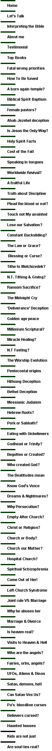 GOD’S DIRECTIONS IN RELATIONSHIPS ARE CRUCIAL TO AVOID AND SURVIVE SOUL TIES OR PEOPLE ADDICTIONS In the occult, ‘soul mates’ are based more on mutual understanding than on passion; sharing emotional and spiritual similarities on a mind level. ‘Twin flames’ are bound by extremely intimate passion. They are supposedly “two halves of the same soul (or mind) and spirit.” Their bond transcends every facet of being human and allegedly began long before they+ “reincarnated” into this ‘new’ life. Reincarnation is nonexistent. “Man is destined to die once and after that the judgment,” (Heb. 9:27-28.) Yet, both these mind-fuses are connected by ‘soul ties’ or soulical bondage that represents their “oneness” in various ways. While these two bonds are seen as positive, “soul ties’ usually take the negative stage. All these dogmas originated from New Ageism, Platonism, and other pagan beliefs. ► ‘Soul Ties’ in particular was made into a christian doctrine by using Bible verses where phrases such as “be not yoked together with unbelievers” are used. ► But that does not show the real picture of ‘soul ties.’ It seems what happened between David and Jonathan in 1 Samuel 18:1-4 and 2 Samuel 1:23 proves that ‘soul ties’ are real. It specifies, “...The soul of Jonathan, [the son of king Saul,] was knit to the soul of David, and Jonathan loved him as his own soul… They made a covenant [that this bond would be carried through their generations.] So Jonathan gave him his [princely authority,] his royal robe and armor… [When Jonathan was killed, David said EVEN DEATH WILL NOT DIVIDE THEM.]” ► This sounds something like ‘Twin Flames.’ Yet in context, it does not imply homosexuality as some allege, but tremendously loyal ‘soul mate’ adoration. ► While this seems natural and innocent, it is a great example of the power of soul-tie adulation in both pre-mortem and post-mortem addiction to moral as well as evil people. ► It boggles the mind, but it is even prevalent in abusive relationships, where victims see tyrants as “good people.” ► Christians hail this Biblical example as ‘soul mates.’ However, person-addiction that defies God’s Word, creation principles, and Moral Law is WITCHCRAFT AND IDOLATRY, (1 Sam. 15:22-23.) Still, such covenants and connections to the deceased flourish in both the occult and christianity, though they sinfully supersede God’s description of genealogy and social connections. ► Both blessings and curses are spiritual and cannot pass through physical ‘bloodlines,’ (Ezk. 18:4-23.) ► “Inherited ancestor curses” are lies. God actually said in Exodus 20:1-6, [virtues and] “iniquities” of ancestors, (which manifest in behaviors,) “visit,” [teach or influence the behavioral choices] of next generations, (Ex. 20:1-6.) ► Also, “the dead knows nothing. They have no more reward. The memory of them [must rather be] forgotten [than fixated on. Both their goodness and evil have perished with them.] Nevermore will they have a share in anything done under the sun,” (Eccl. 9:5-6.) ►► A bereavement period for the loss of a loved one, (either through death, rejection, or abandonment,) is natural and necessary to process the shock or trauma, grief, even anger, and longing for the person. However, God forbade the grief-stricken to harbor soul ties with people. That will result in obsessive attempts to communicate with either the living or the dead, and to hold them vast to “keep them alive” at any price. The Lord commanded, “Do not follow the abominations of pagans… There must NOT be found among you anyone who tries to call up the dead, [as demons will appear, not loved ones…] (Deut. 18:1-12.) And do not make any cuttings in your flesh for the dead [and other losses…]” (Lev. 1928.) Do not harm yourself either spiritually, physically, or psychologically to cope with love, sorrow, anger, or any other emotion. ►► Jesus’ serious warning of family (and other people) adoration, “to love them more than God,” (Mt. 10:37-38,) points directly to self-destructive soul-tie IDOLATRY. The devil use idolatry to move the focus from God to sinful control of the mind or soul, (2 Cor. 10:3-7; Rom. 1:22-23!) This is exactly what Satan and his minions aim for. ► Hence, the constant “battle” to “overcome” all kinds of addiction, (the mind-bondage of soul ties as well,) is to replace lies and deceit with Multilevel Truth.