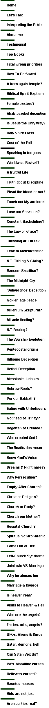 Thanks to everyone who commented on the article, ‘The Holy Spirit Baptism.’ This article caused an overwhelming appreciation for the balanced and Scriptural views which were expressed. However, it is always difficult to share something that does not fit into firmly established, but false church criteria. As a result, I was asked to answer the following questions. The ‘views’ that I express come directly from the entire, truthful context of the Bible, and are therefore definitely not ‘new.’ Considering the charismatic character of the 1991 Spirit Filled Bible-translation, (which, for valid reason, cannot be endorsed without reserve,) the footnotes in this translation nevertheless clearly echo the truth of this discussion. Above all, I rely entirely on the Holy Spirit in all Bible, and other studies. He Alone is our Teacher, Helper, Strength, and the Supplier of all our needs. He Alone came to guide us all into “all truth” - if we choose to submit ourselves entirely to His Scriptural will. A greatly overlooked truth about the gift of tongues is that, when Paul explained the form and function of the body of Christ, he asked the following, “There are diversities of gifts… ministries… activities, but the manifestation of the Spirit is given to each one to profit all. To one a word of wisdom, to another the word of knowledge, to another gifts of healings, to another the working of miracles, to another prophecy, to another discerning of spirits, to another different kinds of tongues, to another the interpretation of tongues. But one and the same Spirit works all these [gifts,] distributing to each one individually as He wills… Now you are the body of Christ and members individually… Do all have gifts of healings? Do all speak in tongues? Do all interpret…?” (1 Cor. 12:4-11; 27-30.) So, it is essential that the following question must be answered according to the full light of contextual Scripture, because it actually pertains to the salvation of every believer in Christ. How does Paul’s question, (“Do all speak in tongues?”) fit into church dogma that proclaim, “Speaking in tongues is the evidence of the baptism in the Holy Spirit”? Still, we can actually demonstrate the gift of “tongues as a sign to unbelievers” that Jesus “possesses” His temple of believers, (1 Cor. 14:22; Eph. 1:12-14.) But how must it “grieve” the Holy Spirit when we must demonstrate tongues as a “sign” to believers — while they still do not accept the reality of this miraculous gift of the Spirit! (Eph. 4:30.) Contents Þ What is the difference between speaking the tongues [languages] of men, angels, and in the assemblies, or is it all the same? Þ Spirit Baptism with the evidence of speaking in tongues? Þ Spirit Baptism can never be a “separate experience” from the rebirth in Christ Þ Holy Spirit Power and the gift of Speaking in Tongues Þ The Indwelling Spirit Vs Constant “Coming Down” of the Spirit Þ Is Speaking in tongues the same as baptism “in” the Spirit? Þ Can only those who do not speak in tongues heal the sick? Þ Why do some call the speaking in tongues “glossolalia?” Þ Is Speaking in tongues necessary to drive out demons? Þ Where does this Baptism with the “Evidence of Tongues” come from? Þ Can the Spirit do miracles without this baptism in tongues? Þ Is the Holy Spirit’s Fruit more important than Speaking in tongues? Þ “But believers after Pentecost were Baptized with Tongues?” Þ “I laid hands on people to baptize with the Spirit,” he claimed Þ If we are “possessed” by the Spirit at the rebirth, where is the evidence? (Eph. 1:13-14.) Þ Is the Kingdom of God a physical, geographical territory on earth that we must occupy?