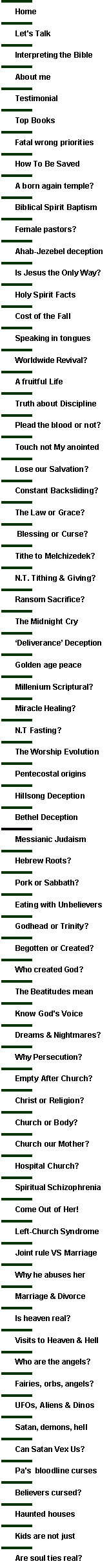 AS SOON AS SOMEONE SUPPOSEDLY SPEAKS ‘HEBREW’ TO YOU, YOU MUST KNOW THAT CHRISTIAN ZIONISTS INFECTED THAT PERSON WITH THE ANTICHRIST DISEASE OF MESSIANIC JUDAISM Church members, Jews, non-Jews or Gentiles, and even Scripturally born again believers are converting to Messianic Judaism and other Zionist Movements in great numbers. They do not know that they are accepting the deceptions of the ‘Sacred Name Movement,’ which was birthed by masonic orders early in the twentieth century. The entire New Testament Covenant in the Lord Jesus Christ is based on the fact that “there is salvation in no other name but the Name of Jesus, given among men by which we must be saved,” (Acts 4:10-12.) The ousted Old Testament covenant with the Hebrews “was symbolic for that time, [pointing to Jesus’ eternal New Covenant for all nations,] in which… sacrifices were offered that could not make him who performed the service perfect… concerned only with foods, drinks, washings, and fleshly ordinances imposed until [Jesus’ full atonement: the establishment of His New Covenant at the cross,]” (Heb. 7:18-19; 9:8-15; 8:7-13; 10:1-15.) · Paul warned in Galatians 5:1-6, “Stand fast in the liberty by which Christ made us free, [past tense at our rebirth,] and do not be entangled again with [legalistic, Messianic Judaist or other] bondage… Every man who becomes circumcised [or keep the ousted O.T. sacramental laws and feasts,] is a debtor to keep the whole law. You have become estranged from Christ [if you ‘go back to your so-called Hebrew roots.’] If you attempt to be justified by the [Old Covenant] law, you have fallen from grace…. [Heb. 8:7-13; 9:8-15.) For in Christ Jesus neither circumcision, [the ceremonial temple law,] nor uncircumcision, [keeping perceived ‘church laws,’] avails anything, but faith working through love.” Messianic Jews and Zionists believe that Jesus of the New Covenant is an “imposter.” They blasphemously allege “the Name of Jesus is a false name.” According to the Sacred Name Movement, which must allegedly conform to its “Hebrew roots,” Jesus is supposedly not the promised “Messiah” or Savior of the Old Testament. This deception, just like its delinquent child, Messianic Judaism, robs believers of the New Covenant Christ Jesus, and thus of their redemption, salvation, and blessing in Him, (Gal. 3:10-14.) This eternal death trap from hell was designed by masonic orders of the Illuminati and the Roman Catholic Vatican. It teaches that “Jehovah and Jahweh, Yah, Jehoshua, Y’shua, Yeshua, or even Jeshua are the names by which “true believers” must supposedly call the “messiah.” This diverts believers from Jesus, the Only Truth, Way and Life by Whom we may come to the Father, to a false ‘savior’ whose arrival they still await, (Jn. 14:6-11.) “Yashua is a false transliteration of the Name of Jesus. To be an actual name in Hebrew, it would need to be spelled in Hebrew as the unpronounceable YHWH, (I Am Who I Am,) as the Hebrew language does not have vocals, only consonants. So, it was made into Yod-Hey-Shin-Vav-Ayin. This ‘name’ cannot be found anywhere in the Hebrew Scriptures... Yeshua (H3442) written Yod-Shin-Vav-Ayin, is supposedly a masculine noun that means "He is salvation" or "He saves." It is the name that refers to Joshua in the TeNaKH, [our Old Testament,] and is the shortened form of Yehoshua, which the [Greek] Name Jesus was allegedly derived from…” Still, Judaist Unitarianism rejects Jesus, the Scriptural Godhead of Father, Son and Holy Spirit, (Rom. 1:20; Col. 2:9-10 KJV.) So, Messianics say, “Jeshua of the Tenakh and the Torah, (the Old Testament Law,) is messiah not Jesus, and we still wait for him to come — shalom!” Pitifully, with their blasphemous, poorly transliterated words they reject the Only True Christ, Who Is crucial to their salvation! (John 14:6 — credit to Wikipedia.) Christians, calling Jesus by variations of the so-called ‘name’ Yeshua, do profess salvation according to the New Testament, but blend the New Covenant teachings of Christ with worthless rituals from the Old Covenant, (Heb. 9:8-12; 10:1-7!) In different combinations, they adopted Zionism, Judaism, Unitarianism such as “Jesus Only,” evangelical end-time theology, Jehovah’s Witness dogma, the Israeli Timeline and the Scared Name deception. Thus, they adhere to precepts of the Old Testament’s ceremonial law, ousted dietary laws, nullified feasts, sabbaths, customs, and self-made Yiddish terminology. · Sadly, the well-known “JEWS FOR JESUS” movement do not forsake Judaist dogma, culture, and politics to live in the Spiritual Kingdom of Jesus, (Jn. 18:36.) They also merged most of the above mentioned teachings with the ousted ritualism of the Old Covenant to manufacture their doctrines. (Hebrews 7:11-19; 8:7-13; 9:8-15,22-28; 10:18!!) Þ However, Paul refuted all these antichrist arguments in the full context of New Testament Scripture, and lamented in Galatians 3:1; 2:21, “O foolish [Messianics,] who has bewitched you that you should not obey the Truth before whose eyes Jesus Christ was clearly portrayed among you as crucified? ...Did you receive the Spirit by the works of the law, or by the hearing of [the Gospel of Jesus Christ?] …I do not set aside the [New Covenant] grace of God: for if righteousness comes through [legalistic or ritual precepts of the old ceremonial temple] law, Christ has died in vain!” (Heb. 7:18-19.) Messianic and Zionist theology compel me to ask, When did God require that His disciples from the Hebrew and Gentile nations must speak and write Yiddish, and call God by bad transliterations of so-called “Hebrew” names? Where did God command us to revere Jesus’ Hebrew ancestry, and when did God lose the ability to understand the Greek Name of Jesus and His Word in English, Zulu, German, etcetera? Most importantly, when did God command His disciples to reject the Name of Jes