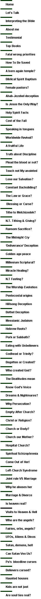 Þ Yet, in defiance of God's Word, among the many extra-Scriptural 'revelations,' there are even accounts of those who supposedly came back from hell to tell how believers in Christ are eternally tortured because they "did not pay their tithes and attend all the church meetings!"  (2 Cor. 9: 5,7; Rev. 18:4.)