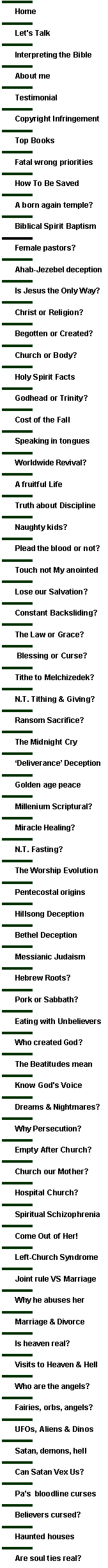 EVERY WORD IN THE BIBLE, INTERPRETED IN CONTEXT, COMES FROM THE MOUTH OF GOD AND IS TRUE Þ Let it be absolutely clear that the “ENTIRETY OF GOD’S WORD IS TRUTH...” (Psalm 119:160.) This means, the full, contextual Truth of the Word of the Lord Jesus Christ throughout the whole Bible can never be altered or snuffed out. Jesus proclaimed in Mark 13:31, “Heaven and earth will pass away, but My [written, contextual] Words, [which will always remain My whole Truth,] will by no means pass away.” Jesus Himself Is the Word of God, (Jn. 1:1-14.) This does not mean that man cannot corrupt God’s Words on a physical level. Often, dangerous dogmas do not even have to corrupt Scripture literally to distort God’s Truth and to indoctrinate people. They simply interpret the Truth as it suits them. E.g., the dogma of the so-called ‘passive’ Ahab and ‘controlling’ Jezebel is a great deception in plain sight of everyone who choose to read the Bible for themselves! In the Book of 1 Kings, Scripture clearly describes over more than five chapters how the arrogant, narcissistic King Ahab, mainly without the help of his pagan wife Jezebel, for most of his twenty-two year rule, “did more evil in the eyes of the Lord than all the kings before him!” (1 Kings 16:29-30 — chapter 21.) Þ However, an example of word by word tampering with God’s Truth is Matthew 19:3-9, where the Pharisees tried to justify their sin by arguing with Jesus about the Law of Moses, [the original Old Testament Law,] which allowed them to divorce their wives for just any reason to supposedly ‘marry’ another. Jesus directly referred them to His eternal Creation Principles and the unchangeable Moral Law when He said, “Have you not read that He Who made them at the beginning, [made only one husband for only one wife and vise versa.] But Moses, because of the hardness of your hearts, permitted you to divorce your wives [for trivial things.] Yet, from the beginning it was not so!” So, Moses himself already changed some of God’s laws to appease the sinning Israelites! Þ Jesus also rebuked the temple masters in Mark 7:13 by stating, “You nullify the Word through your traditions, and many such things you do!” Matthew 15:8-9, “… In vain you worship Me, teaching as doctrines the commandments of men!” Þ The New Testament Peter also warned that false teachers and pervertors of God’s Word would infiltrate the assemblies of believers to do exactly the same as the false teachers of the Old Testament did, (2 Pt. 2:1.) Still, some people believe the Bible is totally incorruptible; God directly spoke every word, and that sounds right. But then they forget what Jesus said about Moses and the temple masters who changed and corrupted the Scriptures to suit themselves, and they add that the Scriptures must be literally applied word by word to everything. This is called “biblical literalism.” They even take ‘literalism’ illogically to what God’s creation should look like according to their dogmas, no matter the overall context of Scripture or the fact that we can clearly see His creation – which declares the majesty and existence of God. Paul confirmed in Romans 1:20, “Since the creation of the world His invisible attributes are clearly seen, being understood by [looking at creation;] even His eternal power and Godhead, so that they are without excuse.” Paul stated inarguably in Romans 1:20, “Since the creation of the world God’s invisible attributes are clearly seen, being understood by [looking at creation;] even His eternal power and Godhead, so that they are without excuse [to err and sin.]” Both Paul and John also commanded that we must “not believe every spirit [or teaching,] but test [prove] everything to see if it is from God,” (1 Ths. 5:21-22; 1 Jn. 4:1-4.) So, if we apply the guideline of Romans 1:20 to the context of the Scriptures, God commanded us to know that His existence is evidenced by the work of His hands, (physical things,) so we can understand and obey Him according to what He says in His Word — related to our finite abilities, of course, (1 Cor. 13:9.) For instance, “God created mankind in His image… Male and female He created them, [humanity.] Then God blessed them and said to them [both,] ‘Be fruitful… [on every level of life,] subdue the earth, and have dominion over [everything you must manage together,’]” (Gen. 1:27-28.) Then, in Genesis 2:24, God instituted the Moral, Holy Marriage Covenant, and now we understand why He created mankind in two parts, which we physically “see” as male and female. It was to spiritually and soulically join “the two” into “one spirit, mind, and flesh” as husband and wife, for the purpose of, (in marriage,) bring forth physical children by their fleshly union as well, (1 Cor. 6:15-20!) This means, when we “see” and “understand” these two different but yoked creation principles, (one God’s physical creations and the other God’s allegorical union into one,) we understand through the work of His hands why male and female must work together universally as individuals, (Gen. 1:27-28,) while they were specifically created male and female for each other in the marriage covenant to build, keep, and manage their private home and family. Two different creation principles. Two separate “places” that mankind must occupy according to God’s Moral Law, (one physically and the other one allegorically;) the truth of which is written on every human “mind and heart,” (Heb. 10:16; 8:10.) Two positions that are both vital to God’s plan for mankind; but incredibly misunderstood and twisted by evil men, even in Biblical Scripture. Malachi 2:15, “Why did God make them one… He seeks Godly offspring. Therefore… let none deal treacherously with the wife of his youth.”