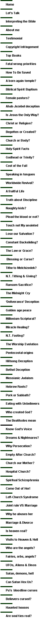 Þ False Christian prophets also “reveal” to unwitting people in “words from God” that they were “abducted by aliens,” sexually abused, and maltreated in the most inhumane ways — even in so-called ‘prior lives,’ which supposedly constitute their many spiritual, emotional, and physical problems.  One must be careful and not blindly accept what these ‘ministers’ say and suggest you do, (1 Ths. 5:21; 1 Jn. 4:1-4.)  It is Satan’s forté to confuse and deceive us, to lie to us to control us, and to use fortune tellers such as Christian prophets to lead us into satanic bondage, (Jn. 16:8-15.)