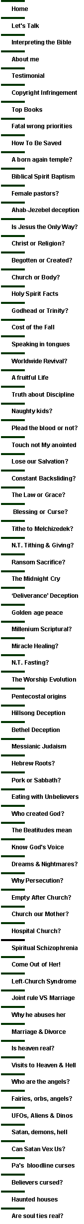 Þ Do not think we can overlook a single unrepented false teaching. Jesus warned that a little “leaven [or false teaching] leavens the whole lump." Keeping their “churches” intact with false dogmas and strange spiritual manifestations, (not the gathering of true believers the “ecclesia” but their physical, unbiblical, Christian system,) every pastor, minister, prophet and preacher that teaches their dogmas, suffer from the dangerous spiritual ‘disease’ of double-mindedness or Spiritual Schizophrenia